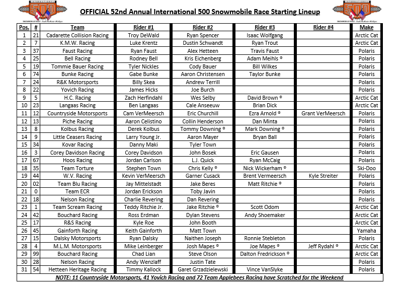 OFFICIAL 52nd Annual #SooI500 Starting Lineup