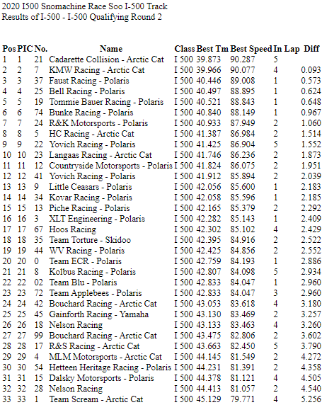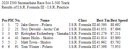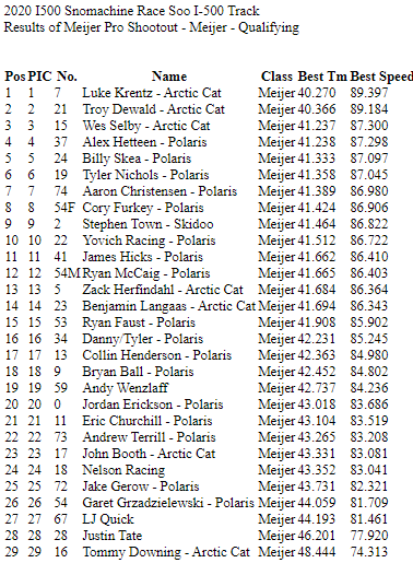 Earlier in the Afternoon in Rounds I & II of #SooI500 Qualifying, Luke Krentz topped the charts in Round I with a 40.204 = 89.543mph while DeWald would eclipse his mark in Round II with a 39.873 = 90.287mph.
