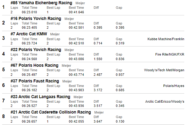 The 31-year-old from Hawkins, MI aboard the #85 Howard Concrete Construction / Yamaha Racing entry for his own Eichenberg Racing Team, starting on the inside of the second row in the main event of the evening. He was able to slip past the front row of Luke Krentz and Troy DeWald at the start and stay out in front to pick up the $1,000 payday