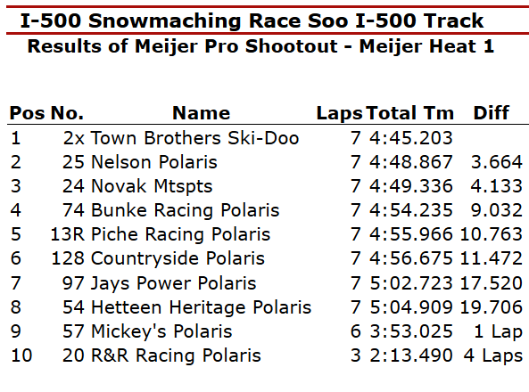 on the Final Lap, Town, aboard his #2 Butler Excavating / Town Brothers Racing / Ski-Doo, made the winning pass and held off Hicks to give the 28-year-old from Traverse City, MI, the thrilling victory in Meijer Pro Shootout IV