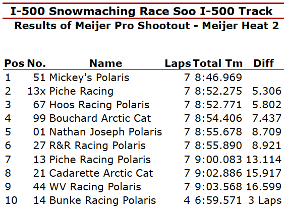 DeWald, on his #57 Mickey’s Factory Racing / Polaris Snowmobiles machine, broke the Meijer Pro Shootout Track Record at the legendary
